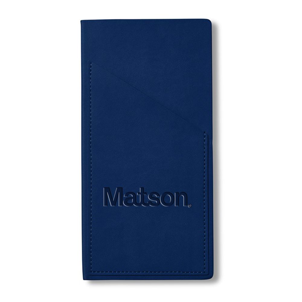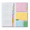 Soft faux leather cover of Italian PU with front pocket. Includes 60 sheets of ruled paper notepad (6"h x 4"w). 80 pages of colored square notepads (4"h x 3"w). 80 pages of colored paper sticky notes (0.5"w x 1.75"h).